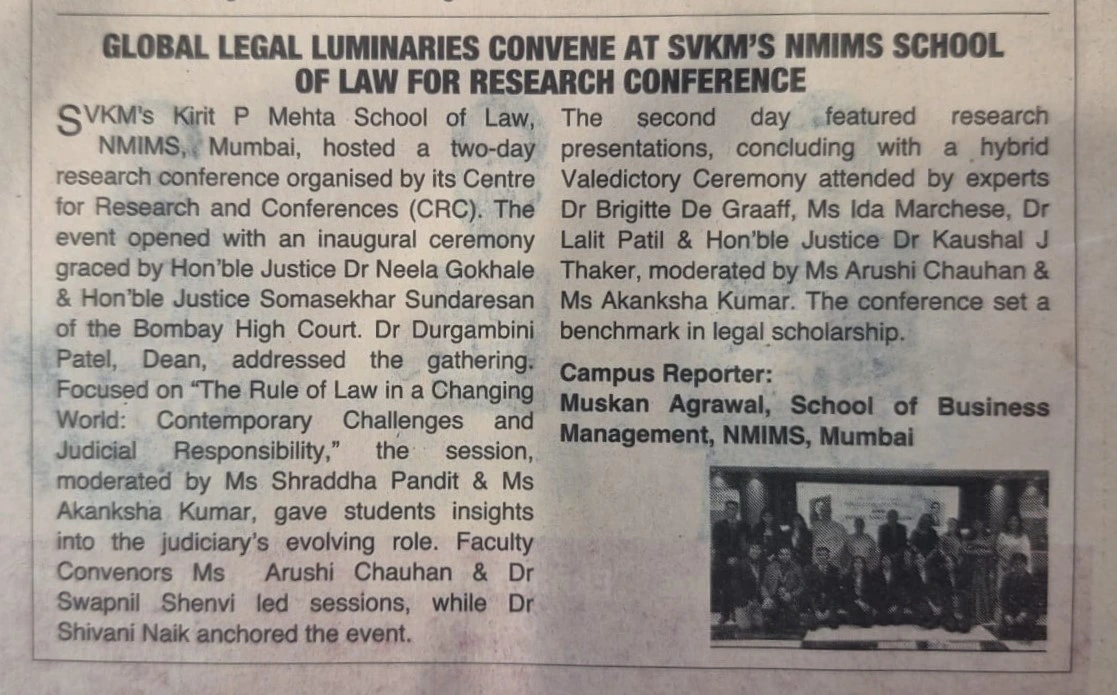 SVKM’s NMIMS Kirit P. Mehta School of Law Hosts Two-Day International Research Conference on Rule of Law