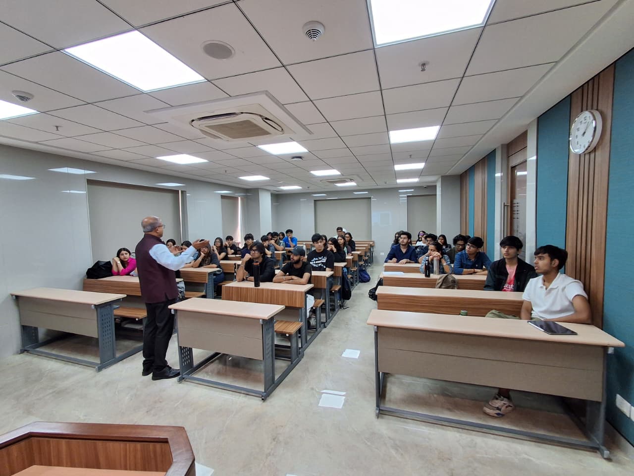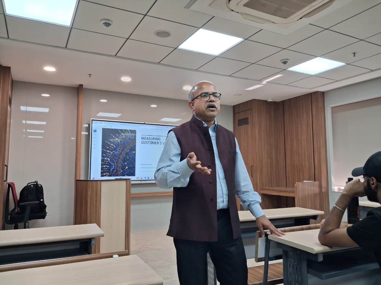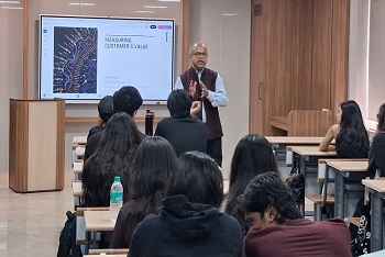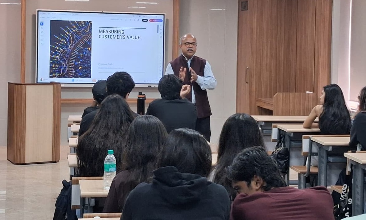 Professor Prithwiraj Nath, Faculty Director of Partnerships, Faculty of Social Sciences, and Professor of Marketing at Essex Business School, University of Essex, UK, delivered an in-person session on “Measuring Customer Value and Designing Marketing Strategy”. The session was attended by approximately 22 first-year students of the BBA Marketing Management programme from the School of Branding and Advertising. The lecture focused on how organizations evaluate customer value using both qualitative and quantitative approaches and translate these insights into effective marketing strategies. Professor Nath highlighted key concepts such as customer lifetime value, market segmentation, and data-driven decision-making, emphasizing their role in building sustainable brands. The session also underscored the importance of aligning marketing strategies with evolving customer needs to enhance engagement, loyalty, and long-term business performance.