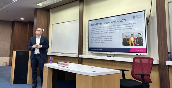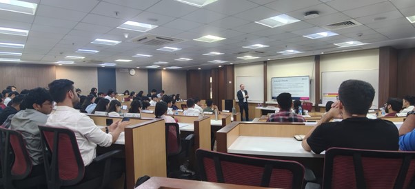 As part of its commitment to providing global academic exposure, PDSE & FBM hosted Professor Michael Stimmelmayr from the University of Bath, UK, for an in-person session titled “Economics in Action” on 2 December 2025. Professor Stimmelmayr, Professor in the Department of Economics and Associate Dean (International), Faculty of Humanities and Social Sciences, shared valuable insights on economic development, microeconomic theory, and the role of institutions in shaping living standards. The session was attended by first-year BBA (Finance) students and proved to be highly engaging and insightful, enriching students’ understanding by connecting theoretical concepts with real-world economic applications.