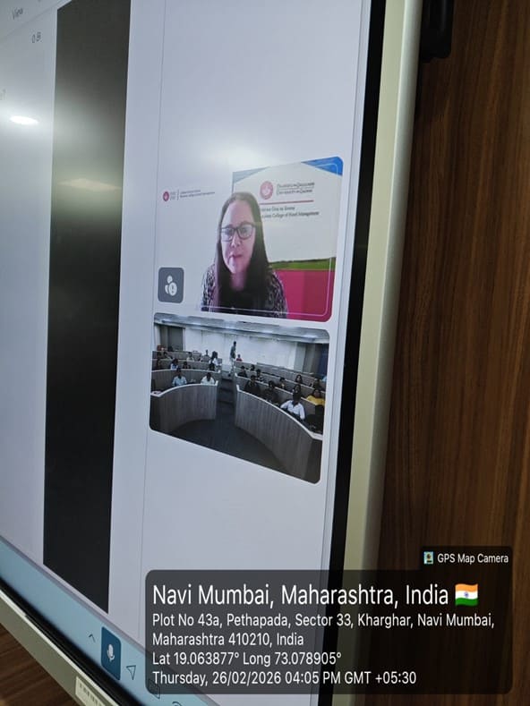 On 26th February 2026, a guest lecture was organized for Semester II first-year students by Dr. P. Manikandan at Classroom 104. The webinar was delivered by Chef Sarah Ryan on the topic “Evolution of European Culinary Principles and Techniques.” The session was attended by 45 students and provided valuable insights into the development of European culinary traditions, classical cooking methods, and professional kitchen practices followed in hospitality education. The lecture also highlighted how regional culinary influences and structured kitchen management contribute to modern culinary standards.