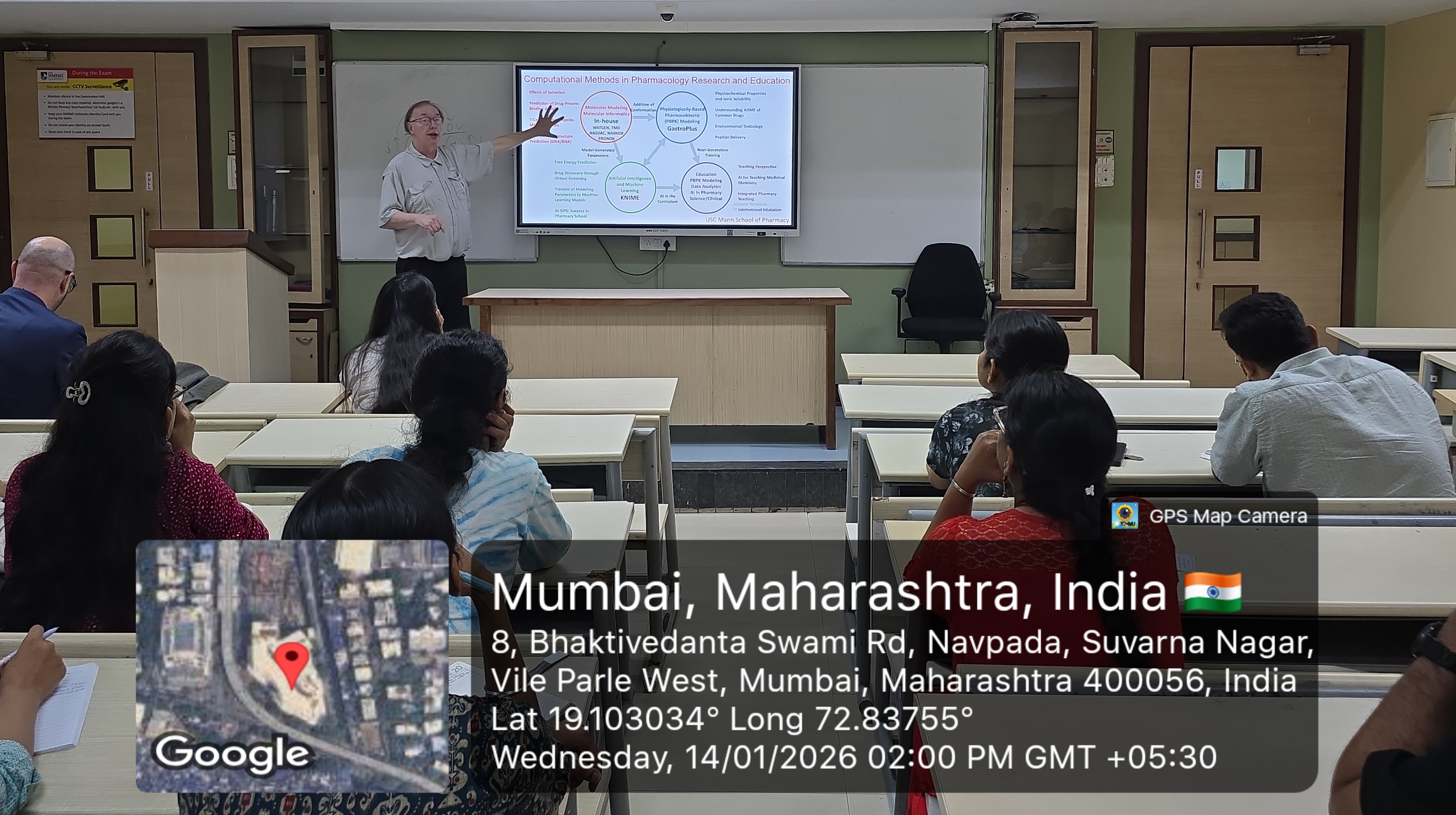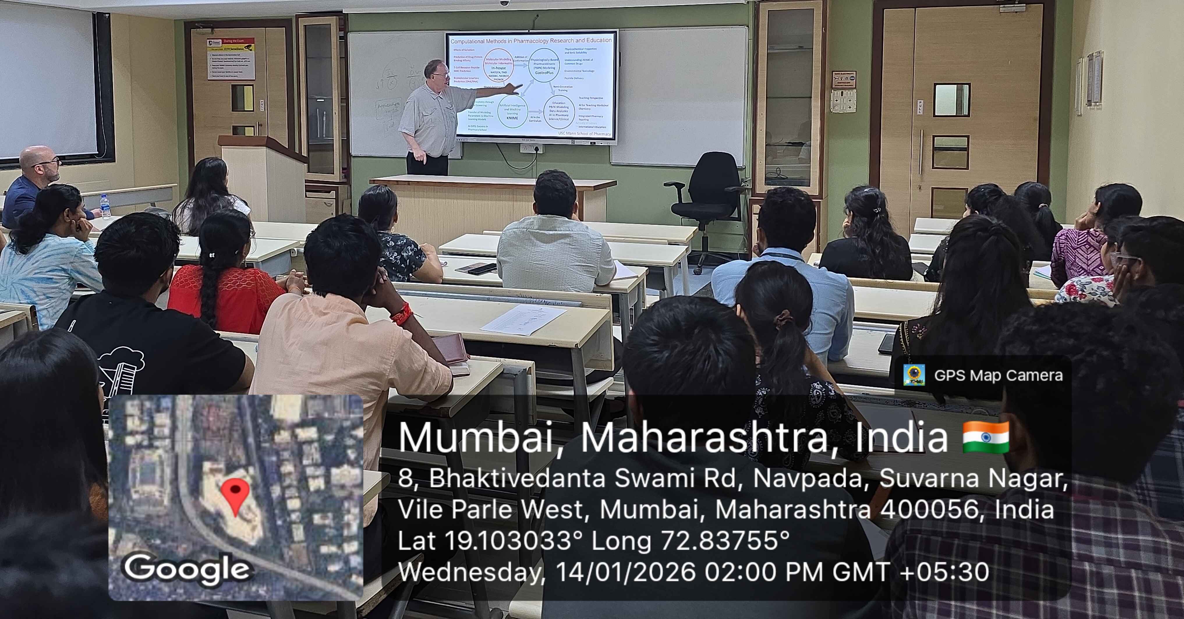 The guest lecture began with the introduction of Dr. Terrence Graham and Dr. Ian Haworth to the audience by Dr. Kalyani Barve (Associate Professor & HOD - Pharmacology Department, SPPSPTM). Dr. Terrence Graham introduced their school, the Alfred E. Mann School of Pharmacy and Pharmaceutical Sciences (University of Southern California), and briefly discussed the research activities carried out at USC Mann. Dr. Haworth then addressed the audience.