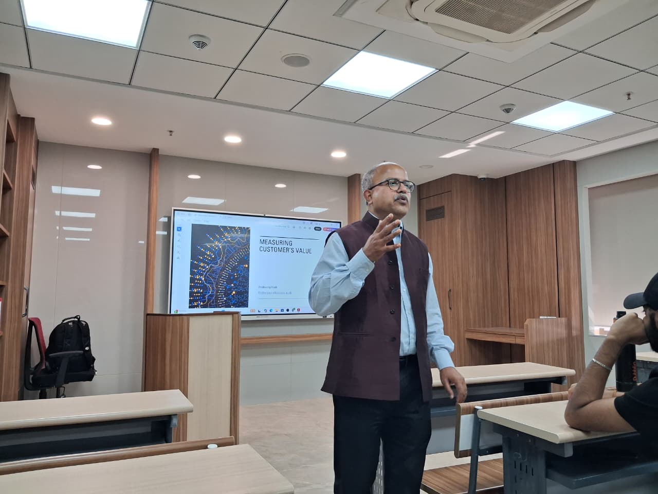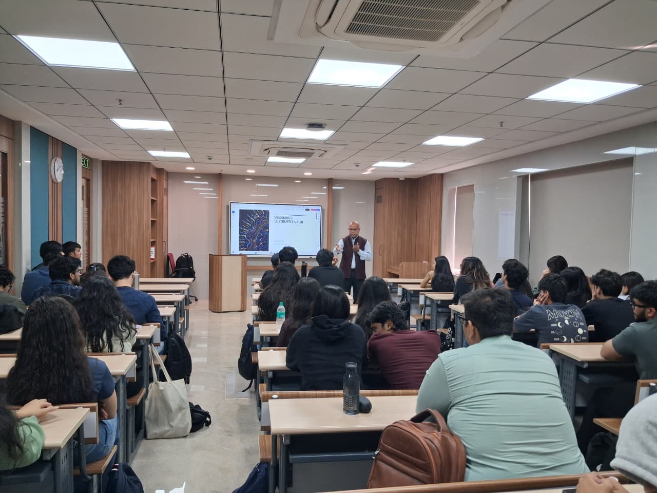 Professor Prithwiraj Nath, Faculty Director of Partnerships, Faculty of Social Sciences, and Professor of Marketing at Essex Business School, University of Essex, UK, delivered an in-person session on “Measuring Customer Value and Designing Marketing Strategy”. The session was attended by approximately 22 first-year students of the BBA Marketing Management programme from the School of Branding and Advertising. The lecture focused on how organizations evaluate customer value using both qualitative and quantitative approaches and translate these insights into effective marketing strategies. Professor Nath highlighted key concepts such as customer lifetime value, market segmentation, and data-driven decision-making, emphasizing their role in building sustainable brands. The session also underscored the importance of aligning marketing strategies with evolving customer needs to enhance engagement, loyalty, and long-term business performance.
