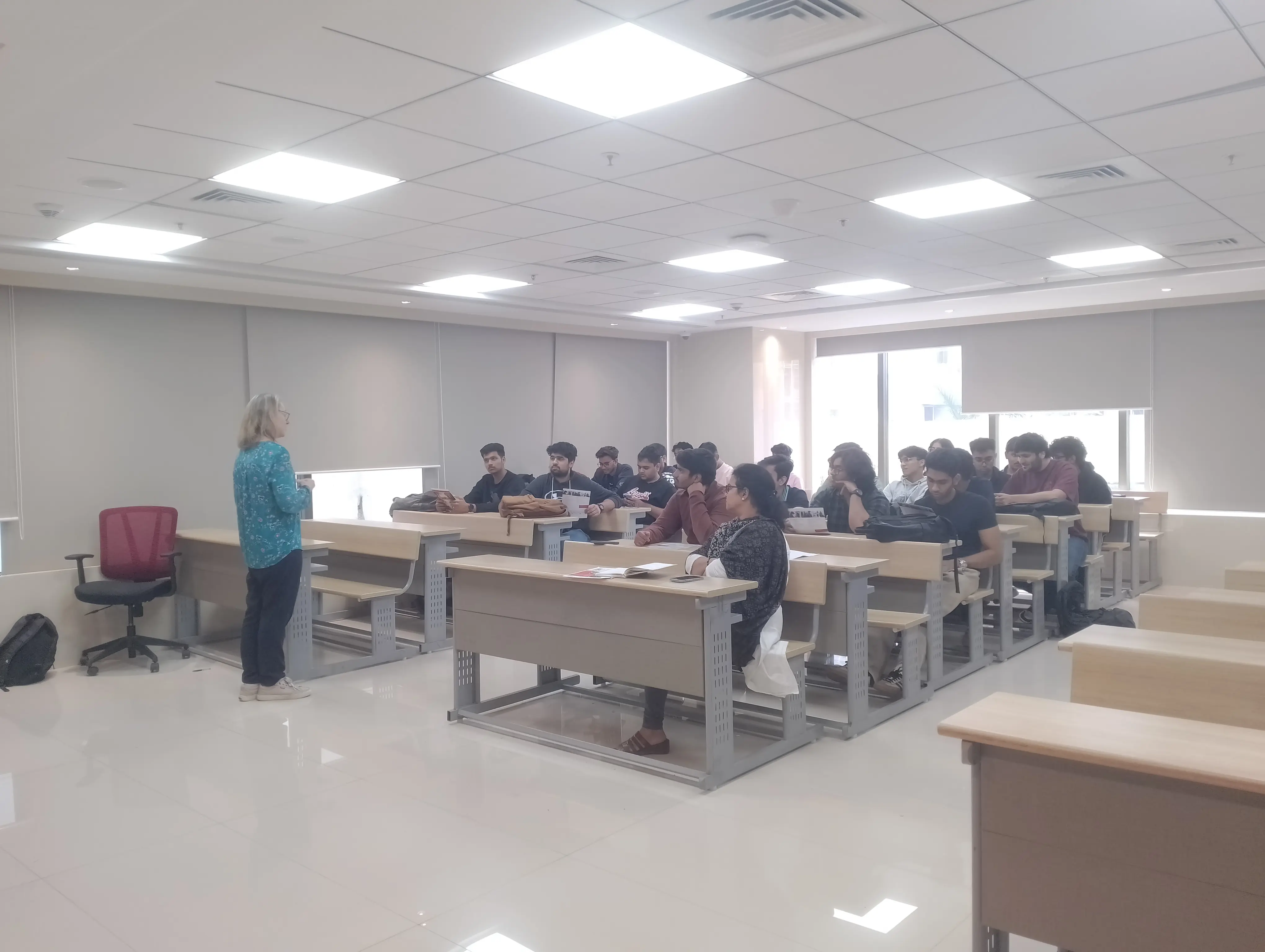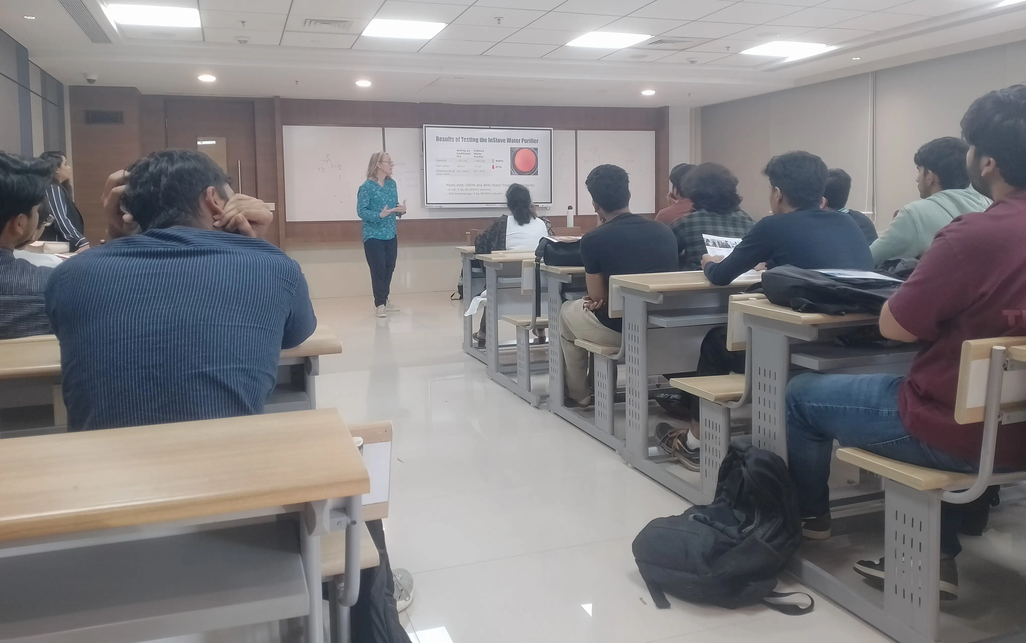 Dr. Sharp introduced students to Santa Clara University’s Frugal Innovation Hub, where graduate students work in teams of 8–10 members on real-life projects with industry and community clients. She elaborated on impactful projects such as: