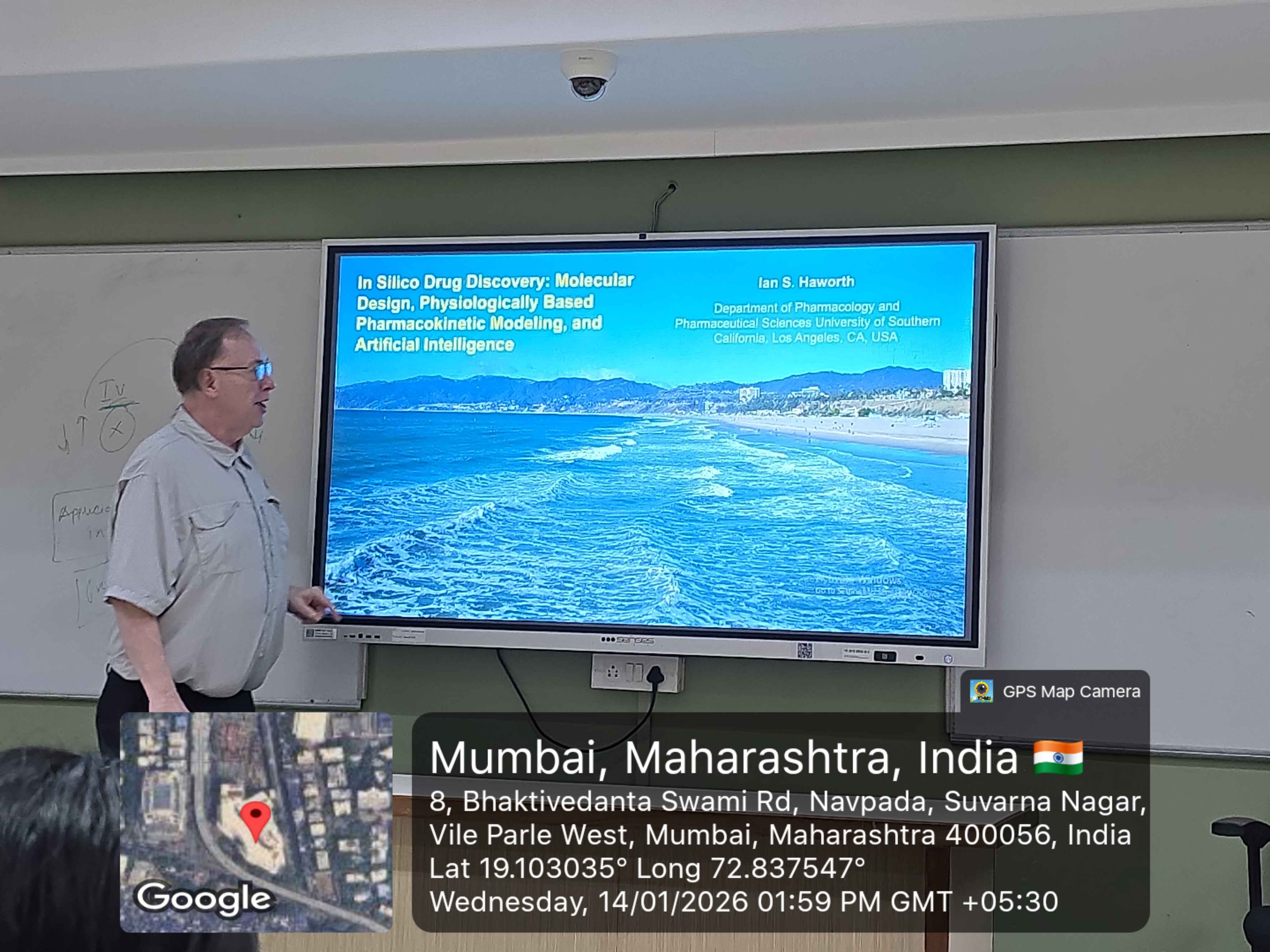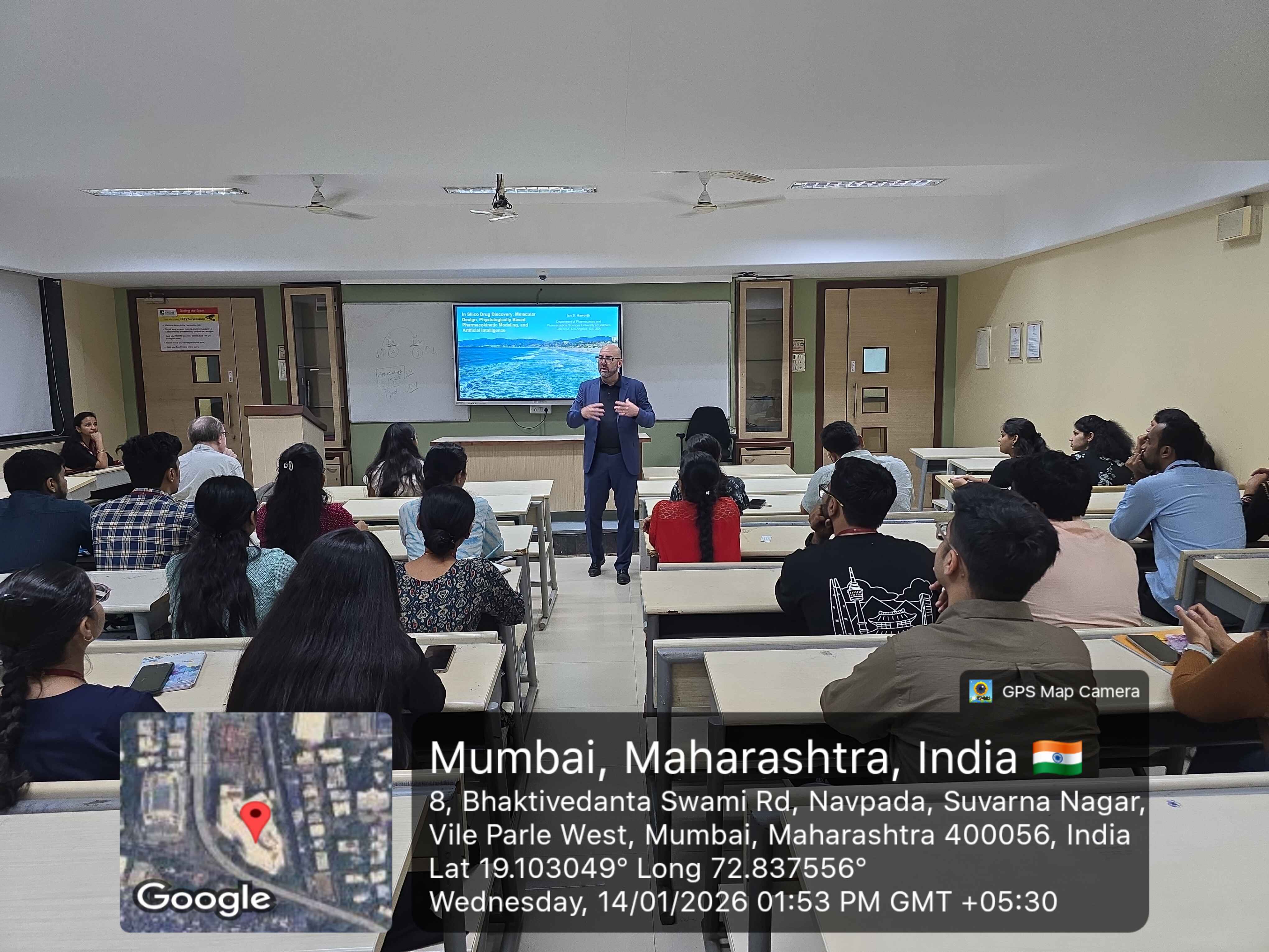 The guest lecture began with the introduction of Dr. Terrence Graham and Dr. Ian Haworth to the audience by Dr. Kalyani Barve (Associate Professor & HOD - Pharmacology Department, SPPSPTM). Dr. Terrence Graham introduced their school, the Alfred E. Mann School of Pharmacy and Pharmaceutical Sciences (University of Southern California), and briefly discussed the research activities carried out at USC Mann. Dr. Haworth then addressed the audience.